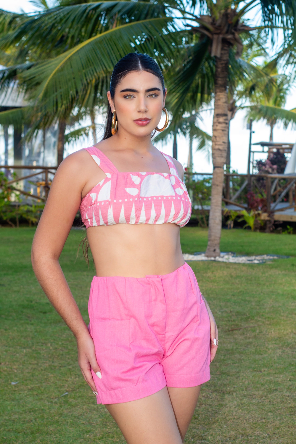 Confeccionado em viscolinho de alta qualidade, este cropped é a escolha perfeita para quem deseja unir conforto e elegância. Com alças delicadas e amarração nas costas, ele proporciona um ajuste personalizado e um toque super charmoso ao seu look.