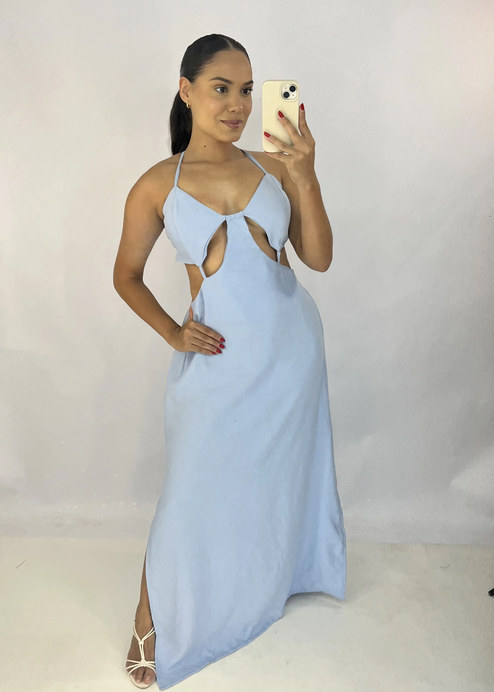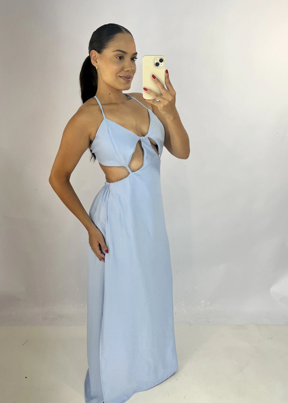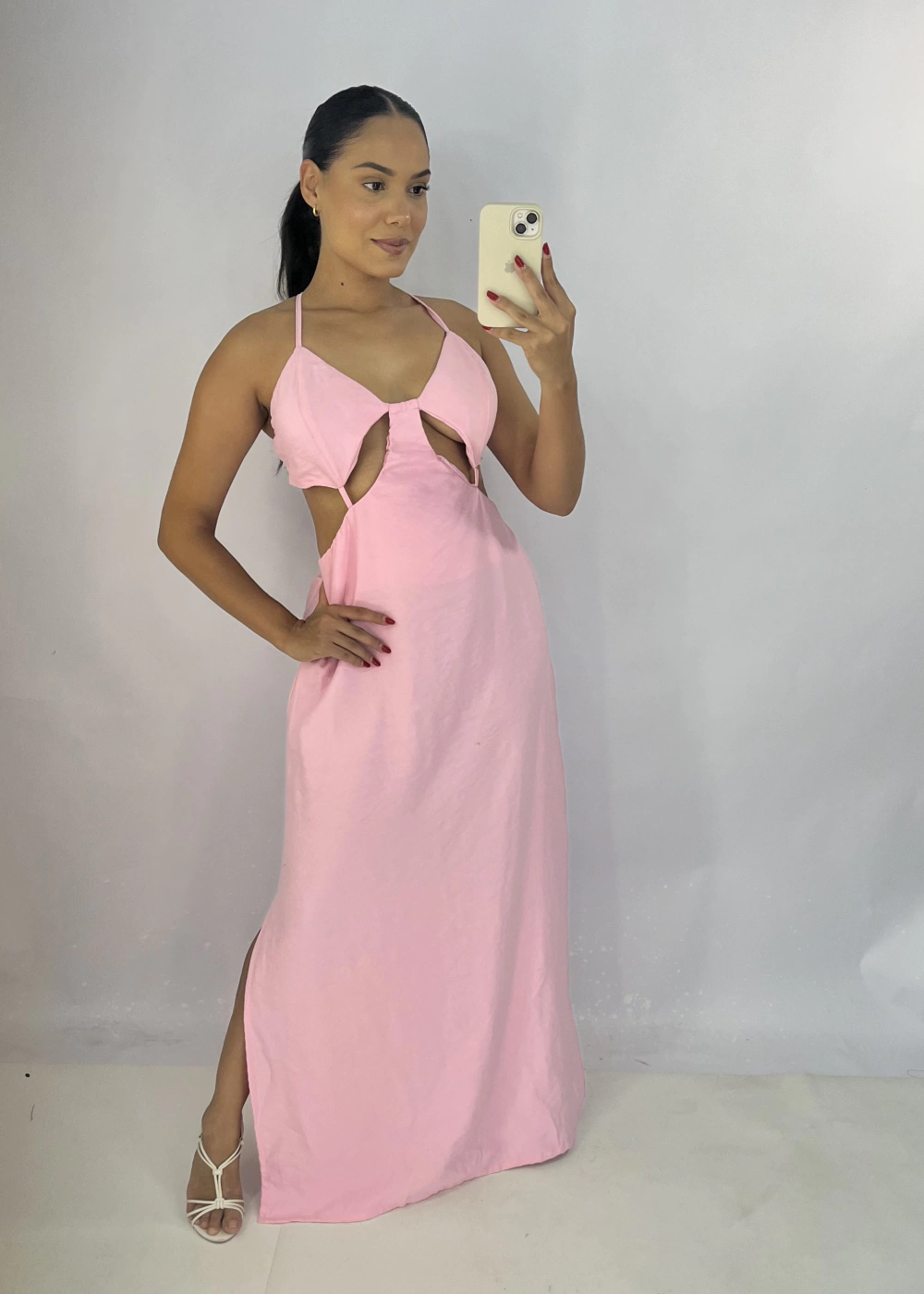 As alças reguláveis proporcionam conforto e um ajuste perfeito, enquanto as costas nuas adicionam um toque de sensualidade. Ideal para ocasiões especiais, este vestido é versátil e elegante.